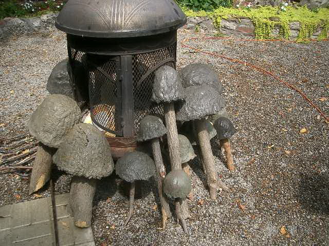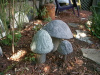 OUR MUSHROOMS CAME ABOUT AS A WAY TO LESSEN OUR WASTE MATERIAL. EACH ONE IS UNIQUE AND NOT DUPLICATED. PRICES VARY DEPENDING ON SIZE,SHAPE,COLOR,ETC. RANGING FROM 10.00-50.00 EACH.POPULAR, IS SET OF 3 FOR 75.00 (AS IN FIRST PICTURE). PLEASE NOTE THESE ARE PICKUP ONLY. PLEASE EMAIL TO MAKE AN APPOINTMENT.